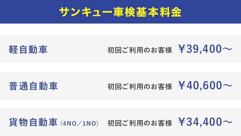 料金表|サンキュー車検センター|川崎の地域に密着した車検・自動車整備